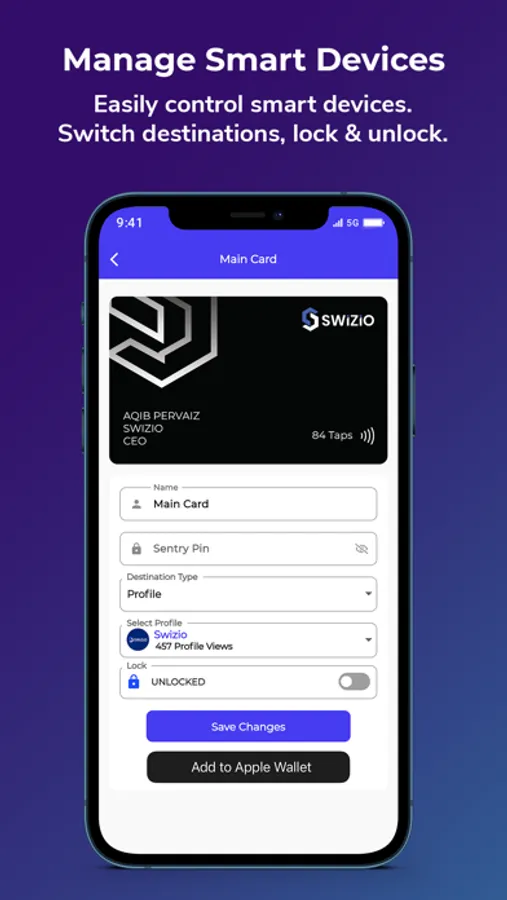With our user-friendly & secure application, you can network like a professional. Manage your Swizio smart devices (smart cards & tags), switch destinations on the go, lock your device, manage your network, profiles & more.