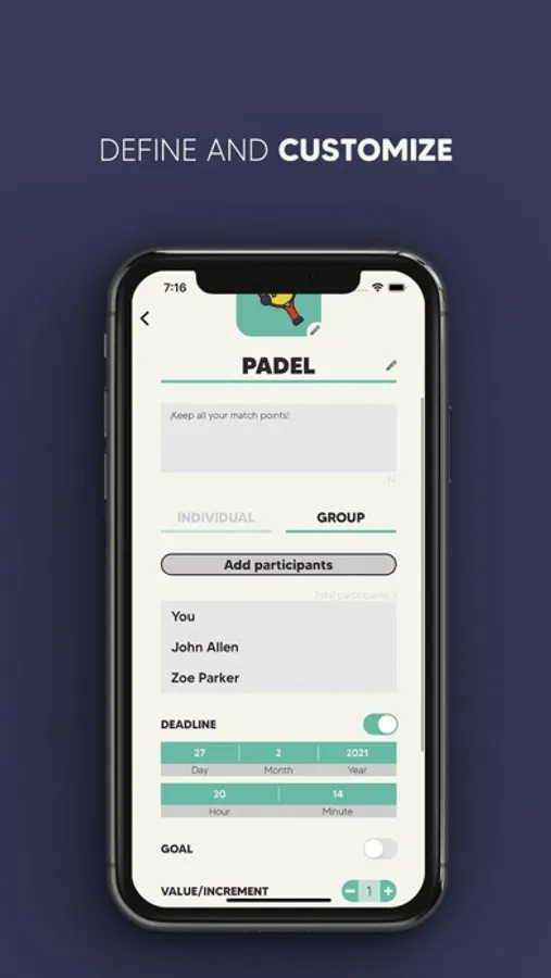 Challenge your friends and participate alone or by teams. The application is tailored to your needs; individual counters, group counters or team counters. Your choose.