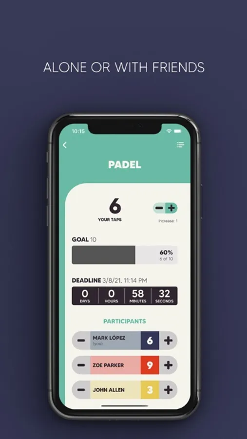 Customize each counter to receive notifications of your friends' taps and follow the progress in real time. If you prefer, you can hide the partial results so no one can see the ranking until the Final Count.