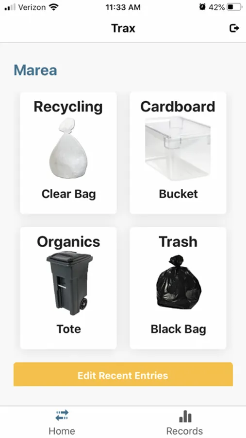 Foodprint Trax is configured for each client site’s unique waste handling practices. The app accommodates common wasted materials streams, including cardboard, organics, recycling, and trash. The app uses customized volume-to-weight conversions based on the sites’ actual average bag or container weights to determine total tons of waste by stream.