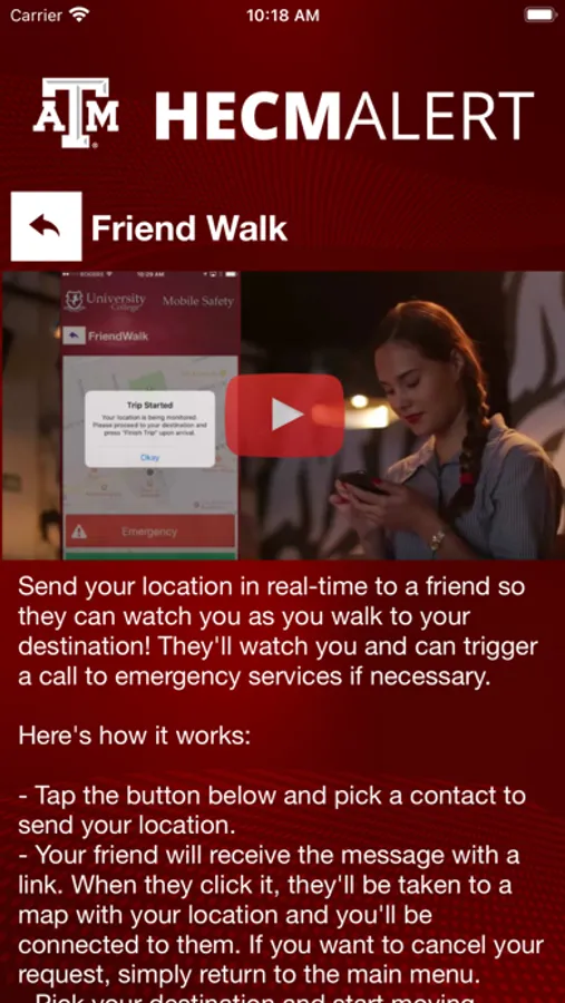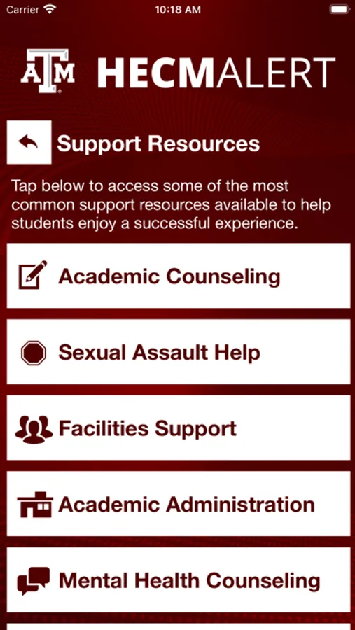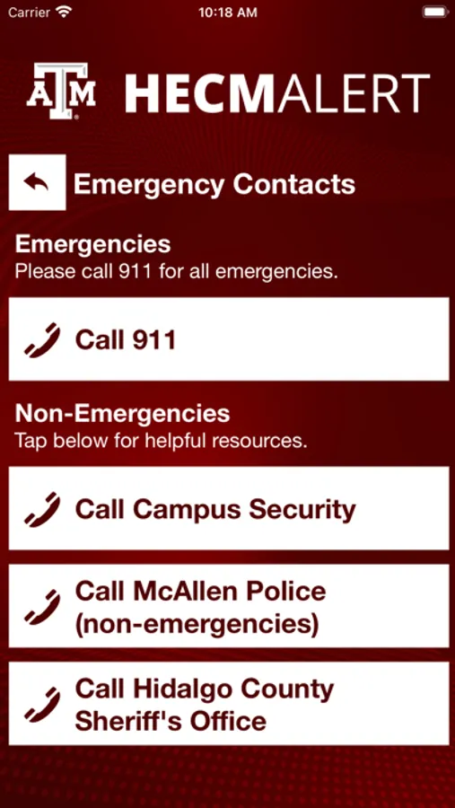 HECM Alert is the official safety app of Texas A&M Higher Education Center at McAllen. It is the only app that integrates with Texas A&M Higher Education Center at McAllen's safety and security systems.This is a unique app that provides students, faculty and staff with added safety at the Texas A&M Higher Education Center at McAllen. The app will send you important safety alerts and provide instant access to campus safety resources.