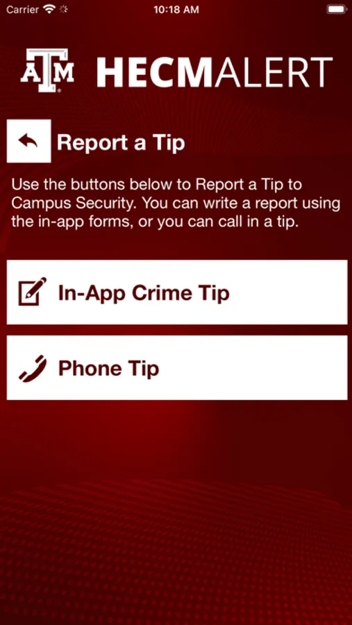 - Tip Reporting: Multiple ways to report a safety/security concern directly to Texas A&M Higher Education Center at McAllen security.
