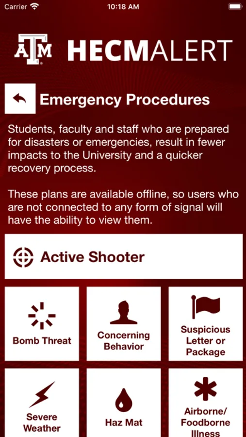 - Emergency Procedures: Campus emergency documentation that can prepare you for disasters or emergencies. This can be accessed even when users aren’t connected to Wi-Fi or cellular data.