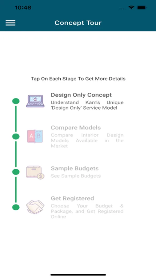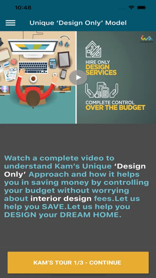 We are presenting phase-1 of Kams Designer Zone’s app exclusively for new clients to give a complete understanding of the interior design market. It will help you making right choices during various stages while you are getting your home interior designed.