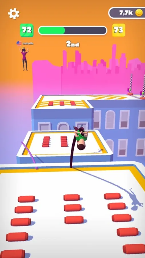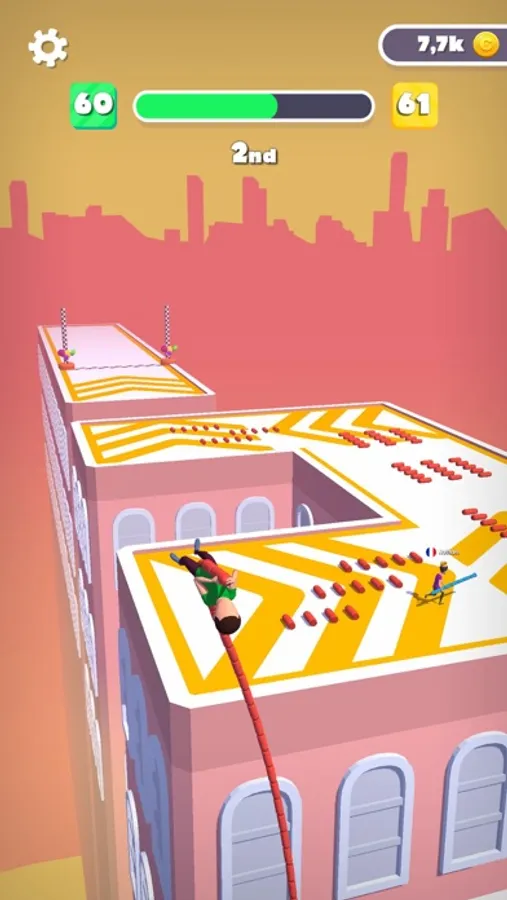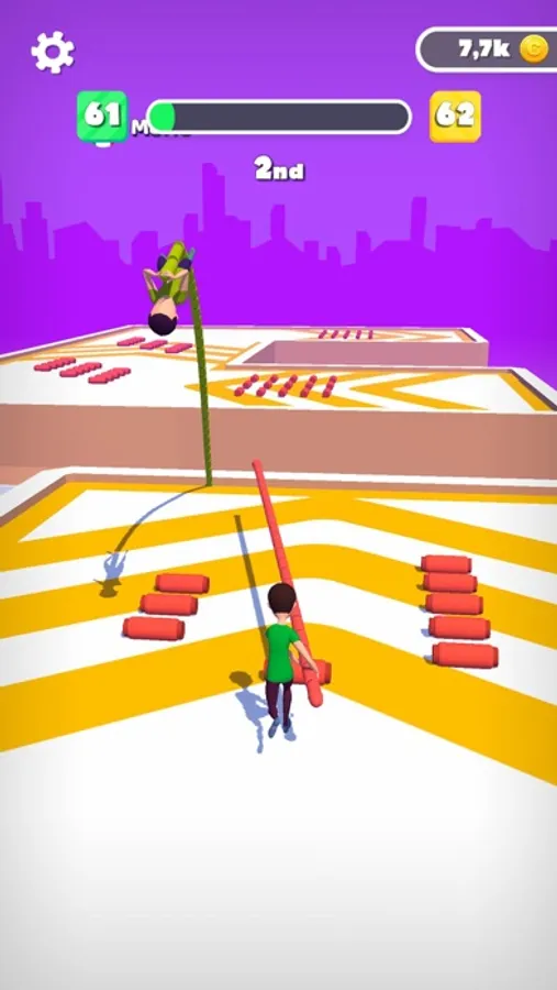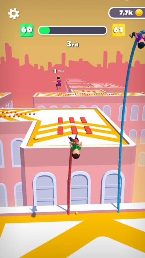Start running, don't look back, collect the pole pieces and pass your opponents. Be careful, you may find yourself falling from the skyscraper while taking the short route.