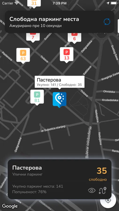 Proverite u svakom trenutku broj slobodnih parking mesta u beogradskim garažama i parkiralištima. Aplikacija vam daje mogućnost da otvorite Google Maps/Apple Maps kako bi vas navigacija odvela do željene garaže.