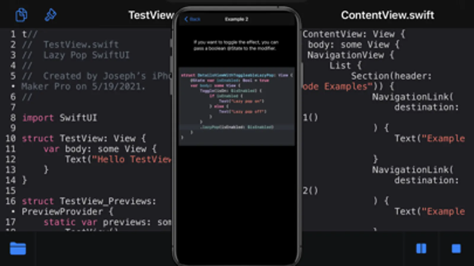 App Maker Professional lets you write mobile applications on your iPhone or iPad using real Swift code!