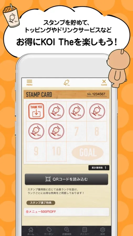 スタンプを貯めると、トッピングやドリンクのサービスを受けられます。