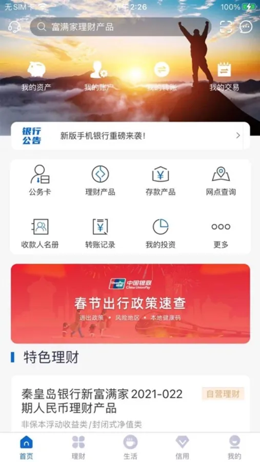 秦皇岛银行移动银行涵盖了日常营业网点提供的基本金融服务,包括账户管理、转账汇款、基础理财、自助服务等功能,让您轻松掌握账户资金动态,随时随地进行财富管理。