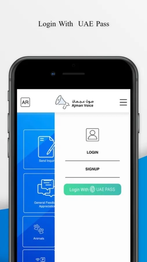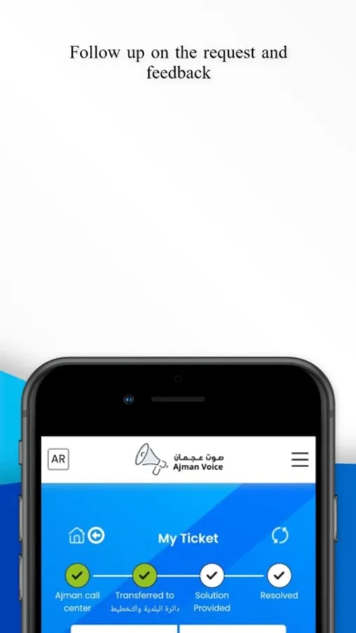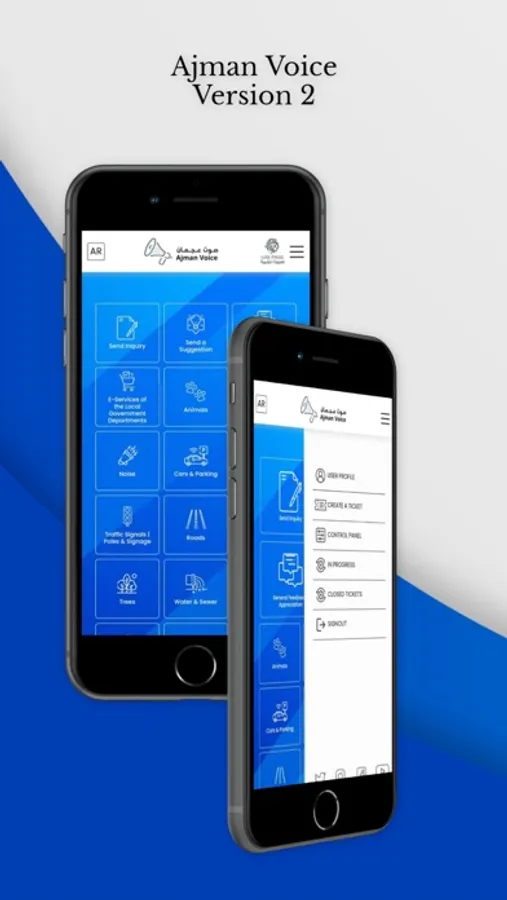 (Ajman Voice) Mobile Application Ver 2.0, allows users to submit Complaints, Emergency, Suggestions, Service requests and Follow up the transactions.