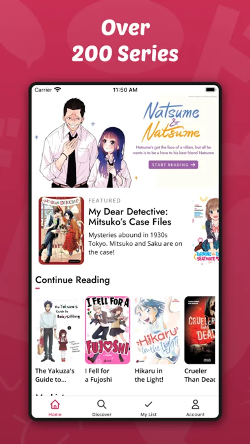 • Weekly new chapters from exclusive series including Natsume & Natsume and Turning the Tables on the Seatmate Killer.