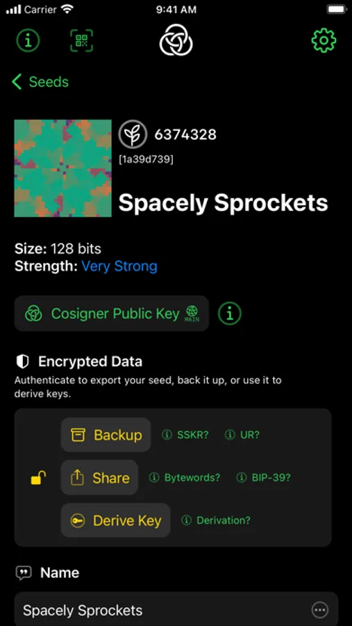 Gordian Seed Tool protects your cryptographic seeds while also making them available for easy use. Using Seed Tool, you can generate seeds and store them securely on your device. You can then derive and share multi-signature signing and verification keys from those seeds or use them to sign PSBTs. Sophisticated backup procedures include printed pages and Sharded Secret Key Reconstruction (SSKR) — which lets you split your seed into pieces and send them to trusted parties, who can send them back to you in an emergency for seed recovery. You can even use an entirely offline device (no internet access) to store your seeds and use QR codes to exchange accounts, descriptors, seeds, keys, or PSBTs with online devices running compatible wallet or signing software.