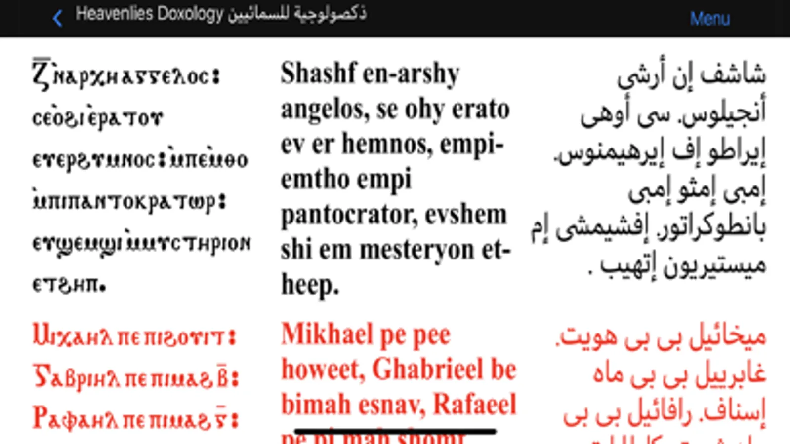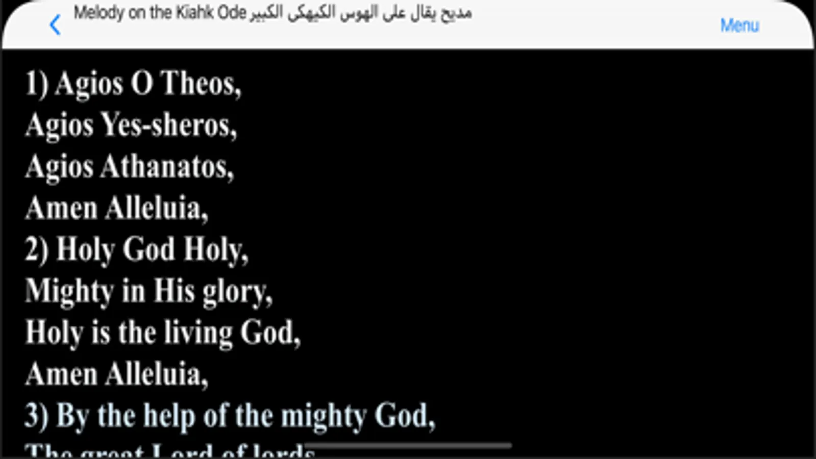 Praising is the work of the Heavenlies, and the Church is Heaven on Earth. Seven Tunes is a mobile application that includes some of the services that are used in the Coptic Church. It includes the Standard Psalmody, Kiahk Psalmody, the Raising of Incense , Great Lent Psalmody , Holy Pascha Book and Veneration Menu. This application has those prayers laid out in a beautiful and simple scroll view. The user scrolls through the content of each hymn in the service. The most important feature of Seven Tunes is the ability to display the Coptic parts of the hymn in either Arabic or English. This allows for the people who are not strong in the Coptic language to participate and to chant with the congregation. The application’s default languages are Arabic, Coptic and English, but the user has the option in the settings to change the languages and the number of languages to be viewed. We pray that God may bless this work to grow thirty, sixty and hundred-fold and that we add more services that are prayed throughout the year in the near future.