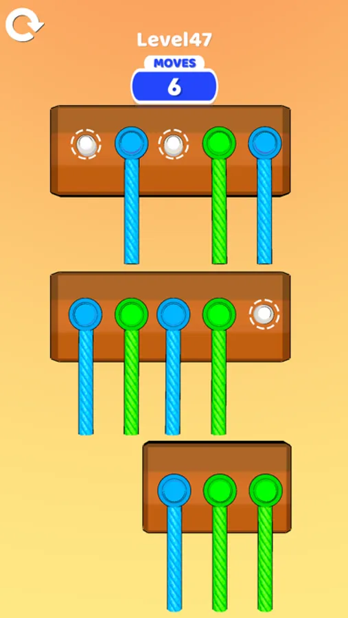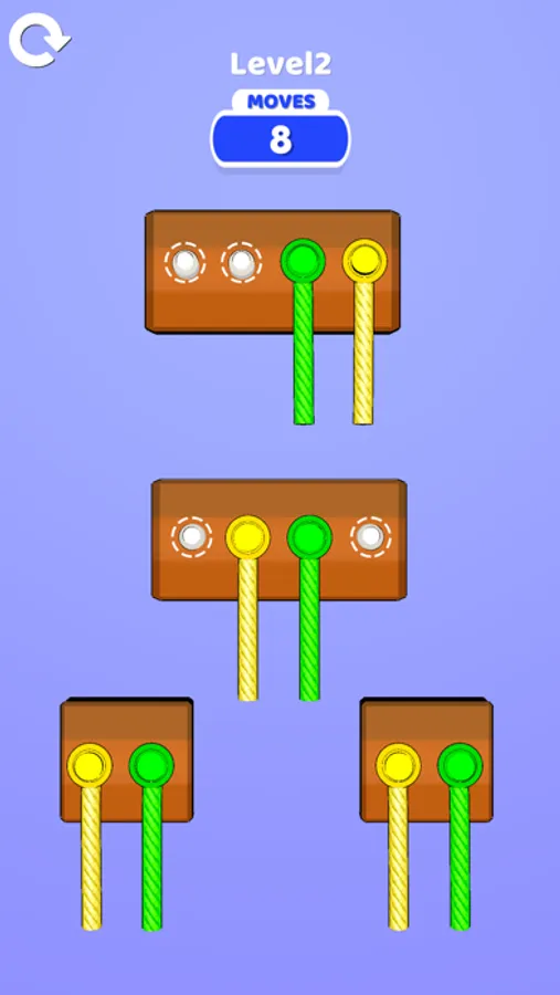 Complete the level by sorting colorful ropes!