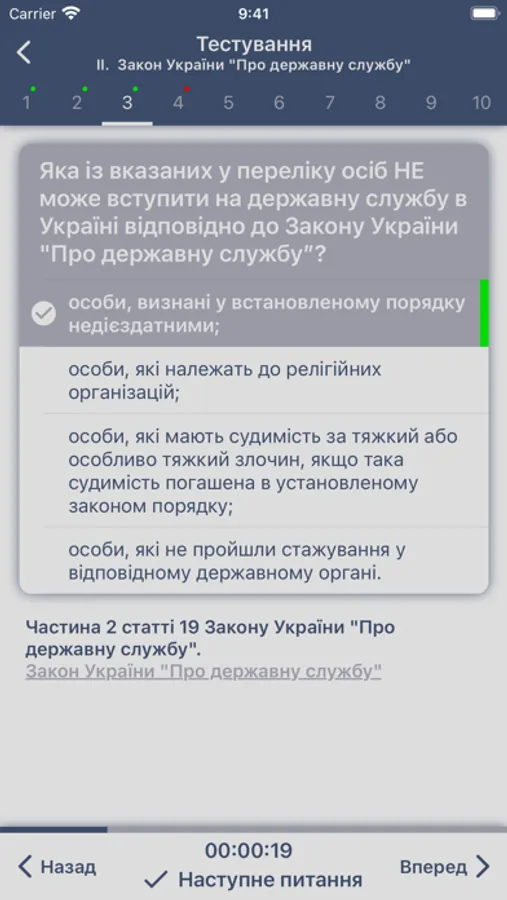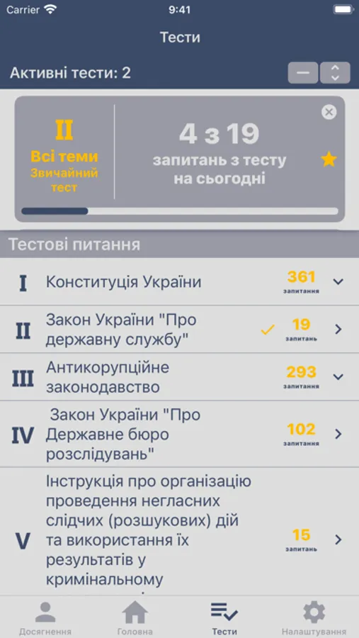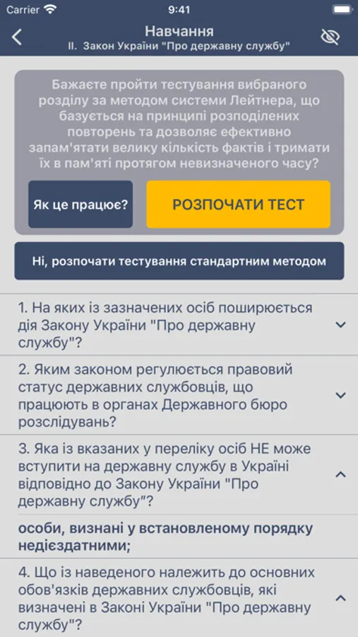 Додаток створений для легкого вивчення, запам'ятовування та повторення питань, за якими відбувається тестування в Державне бюро розслідувань.