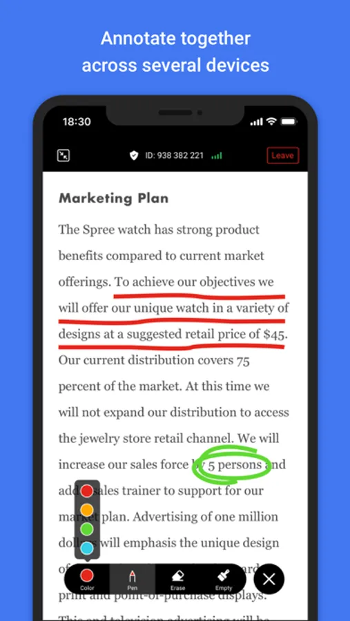 - Co-annotate in real-time on documents and whiteboard