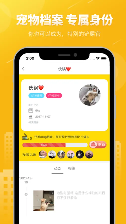 养宠日常提醒,设置体内驱虫、体外驱虫、美容、注射疫苗等一键提醒,让你在繁忙之余也能照顾好你的爱宠。