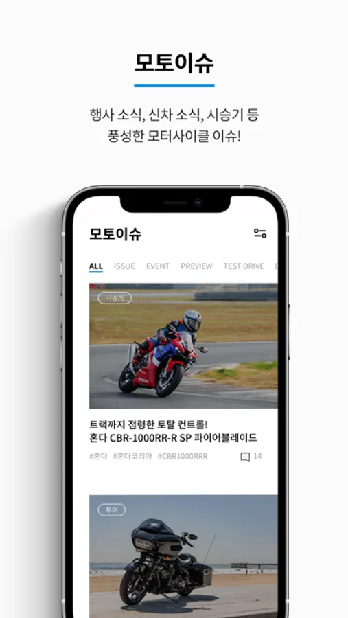 신차 출시, 프로모션, 프리뷰, 시승기, 행사, 제품 리뷰, 이벤트 소식 등 다양한 국내외 모터사이클 이슈를 가장 빠르게 전달합니다.