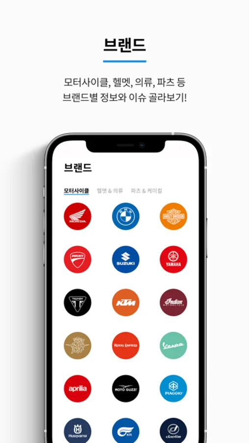 모터사이클, 헬멧, 의류, 파츠 등 브랜드별 이슈와 딜러 정보, 모터사이클 라인업과 스펙을 모아서 제공합니다.