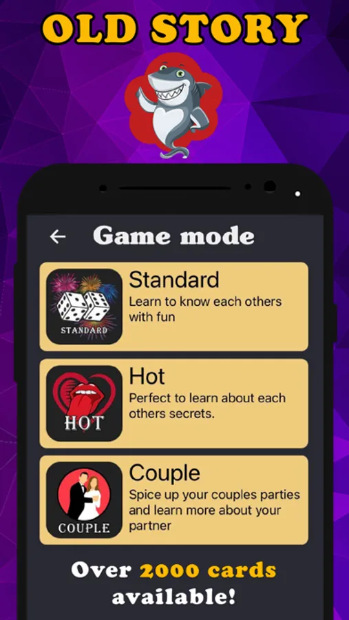 Our game contains a standard version that will allow you to start your evening easily with soft and interesting cards, but also a hot version which will allow you to raise the temperature and untie the tongues to let you know about all your friend’s secrets. Old Story also contains a Couple mode which will allow you to learn to know your partner better.