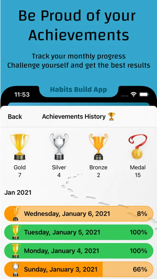 Building Habits is one of the things necessary to accomplish any goal or work that needs commitment and persistence. It is definitely a skill worth acquiring. This app will help you to keep track of your habits building daily progress, as well as weekly and monthly progress, all in a simple, interactive and easy to use interface. This app available in English and Arabic.