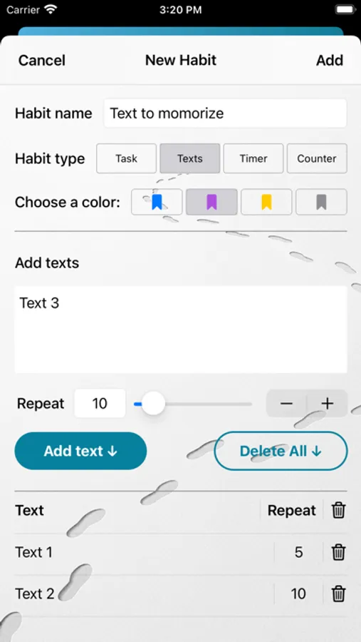 2- Texts: a habit that repeated daily where you need to read a number of texts, such as the morning and evening supplications.