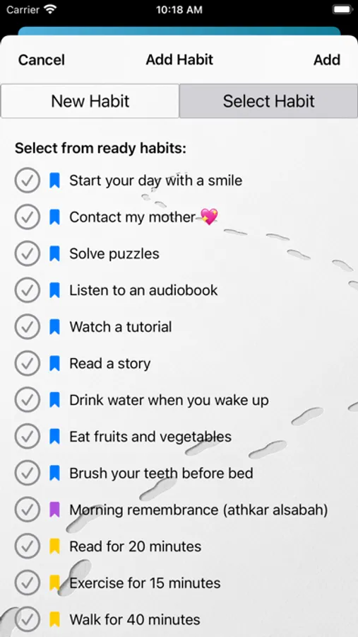 Types of habits that can be added: