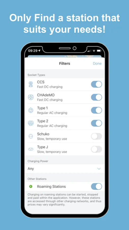 -View a real-time map of the state of charging points ( Available - Charging - Out of Order)