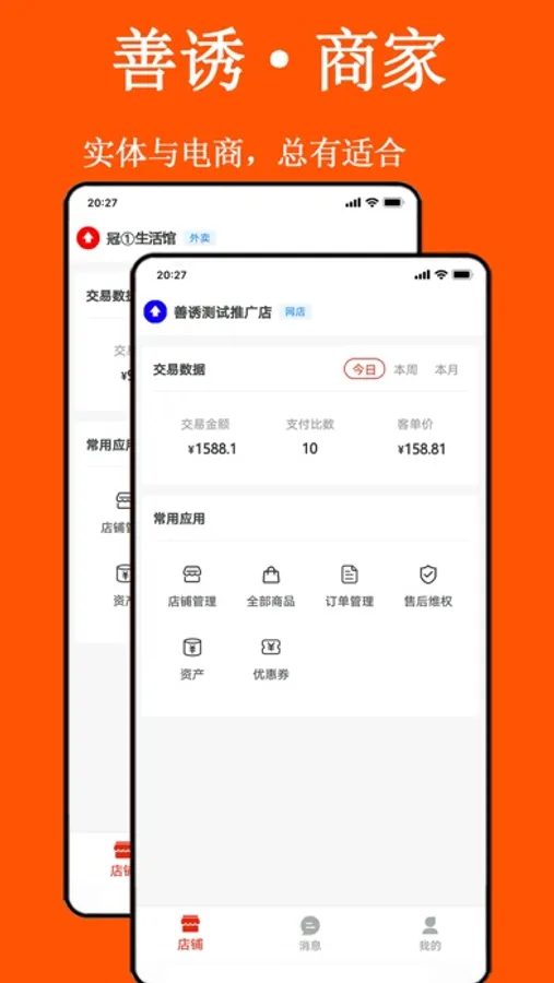 善诱商家版是提供给商家入驻平台经营的手机软件,主要功能是接收并处理用户订单,售后处理,经营结算。对广大实体店及线上网店商家开放,任何类型的商家,只要能直接服务于消费者的,都可以申请入驻,轻松注册,快捷上架。