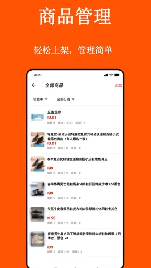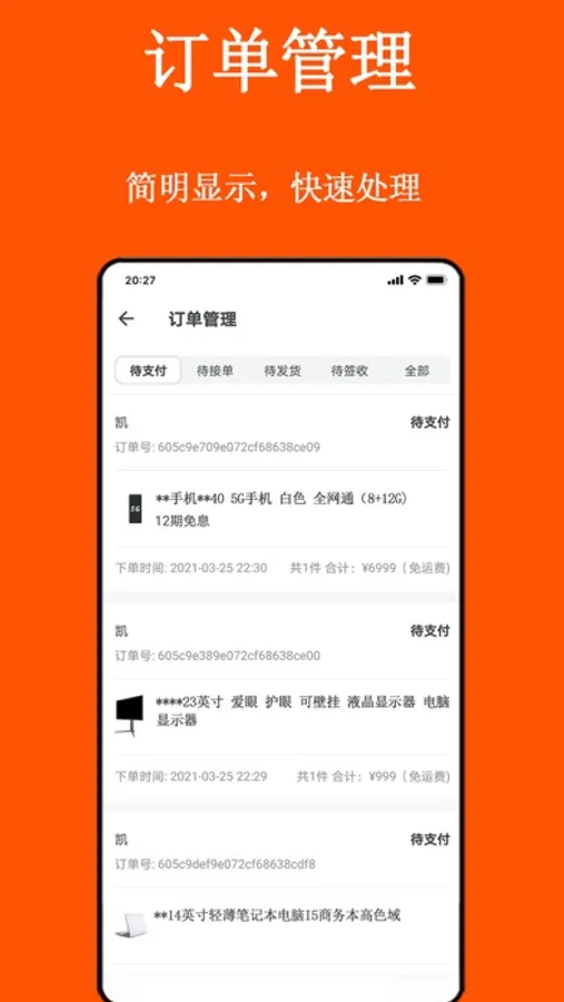 订单管理页面简单明了,快捷对接即时订单,售后管理工作。