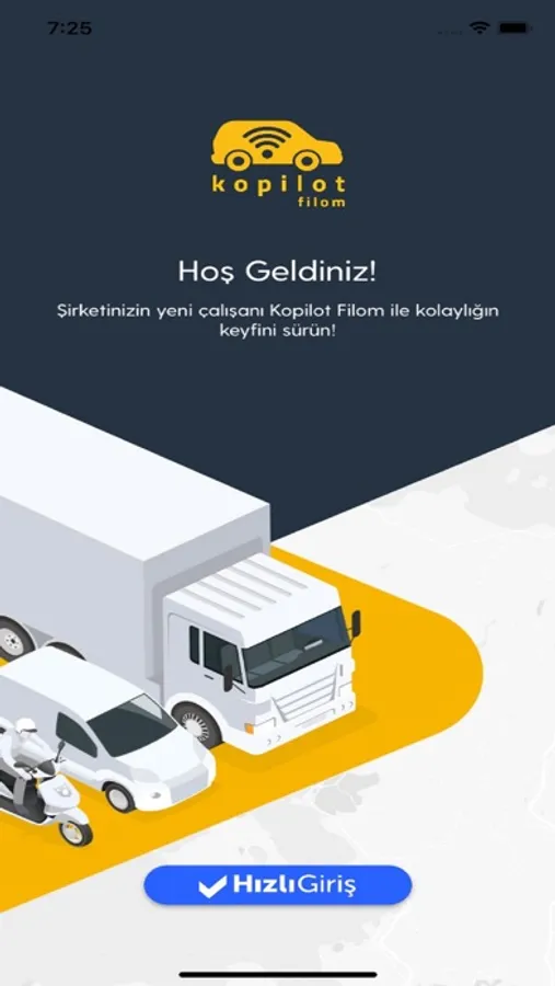 In order to posses this Kopilot Filom Mobile Application, which will provide you with more efficient and secure fleet management, you can subscribe to Turkcell Kopilot Filom Service. After subscribing to the service, you can login to the application by using Fast Login with your gsm number assigned to the system. For detailed information, you can visit www.turkcell.com.tr/kurumsal/kurumsal-cozumler/kopilot-filom