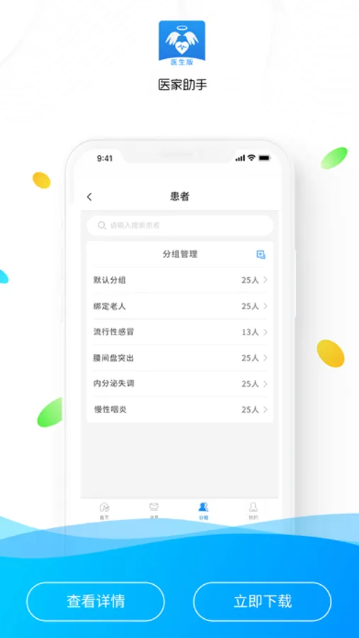 医家助手是配合客服、社区健康管理人员、医生等人员对安康天使用户进行跟踪管理,用药指导及健康咨询等服务的,方便管理人员对安康天使用户进行管理的助手类APP。