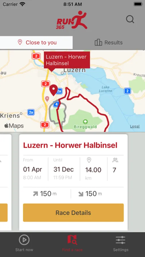 Die RUN365 App bietet wunderschöne Laufstrecke an verschiedenen Orten in der ganzen Schweiz. Mit RUN365 bereitest du dich auf deine nächste Laufveranstaltung vor, kannst dich mit anderen Läuferinnen und Läufer messen und die Schweiz laufend kennen lernen. RUN365 ist Corona-konform: Du läufst allein an der frischen Luft und erlebst in deinem Training etwas Wettkampfcharakter. Die Laufzeiten aller Teilnehmenden werden in der Rangliste veröffentlicht.