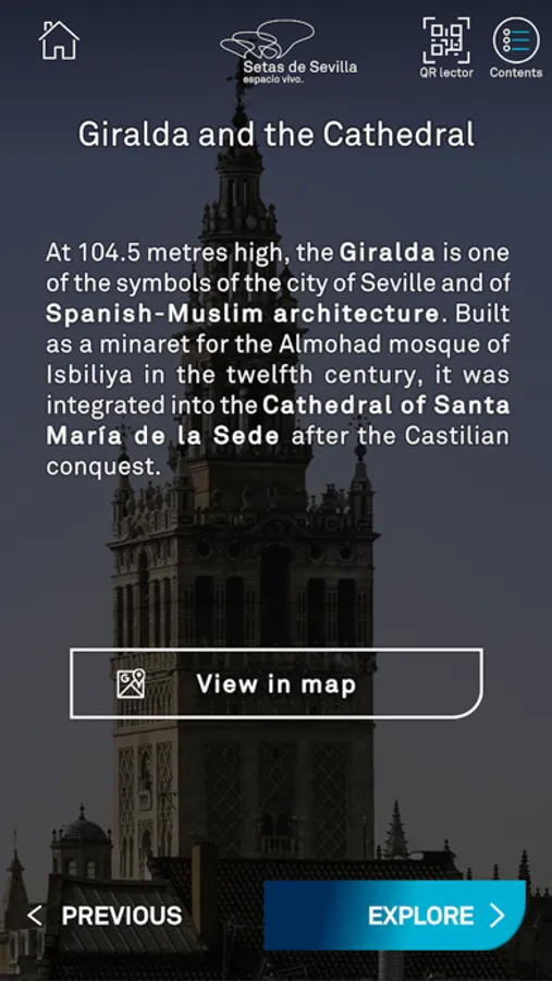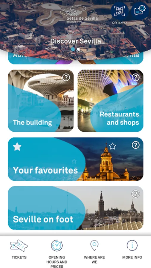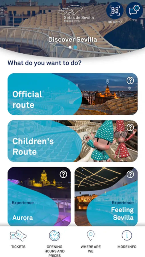 The greatness of Seville, at your fingertips. With Setas de Sevilla App you can have all the cultural and tourist wealth from your phone. Discover our walkways to Mirador, and from here each of the most special corners of the city. A dynamic experience with photos, videos, augmented reality, audio guide. Pieces with which to deepen your visit and reach the soul of the city. And for the little ones, the Elves of Las Setas have some fascinating surprises in store for them as they discover the monument and the history of the city.