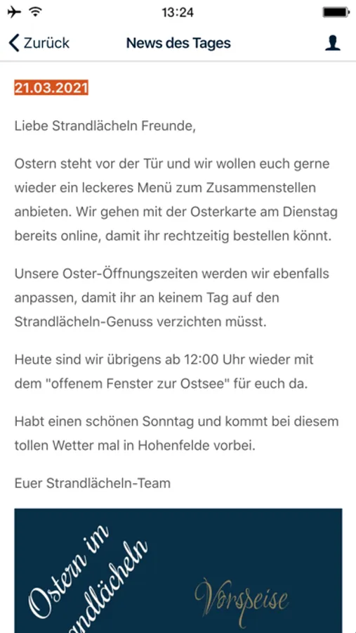 Mit dieser App kannst du dir einen schnellen Überblick von allen Aktivitäten des Strandlächelns auf einer Seite verschaffen. Von Veranstaltungen. über Speisekarte bis hin zu "Außer Haus" und Übernachtungsmöglichkeiten. Strandlächeln auf einer einzigen Plattform.