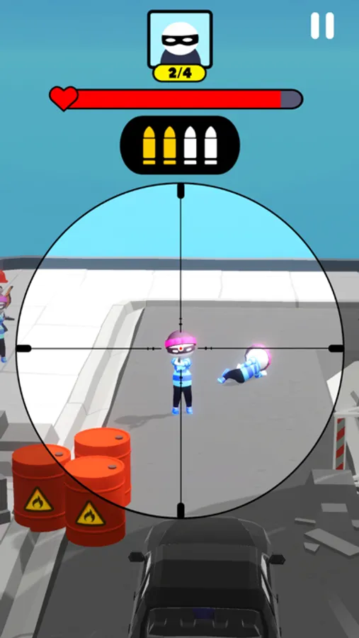 Hold and drag your sniper scope to aim, release to shoot. Use a sniper rifle or even a grenade launcher for an awesome multi-kill!
