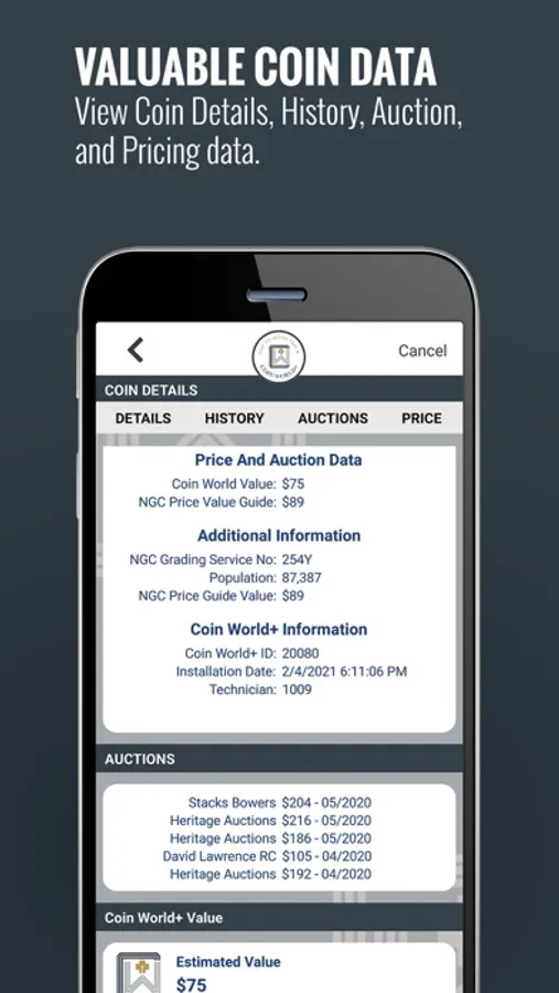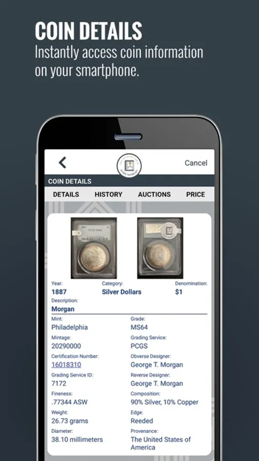 - See coin values, sale history and grading service data