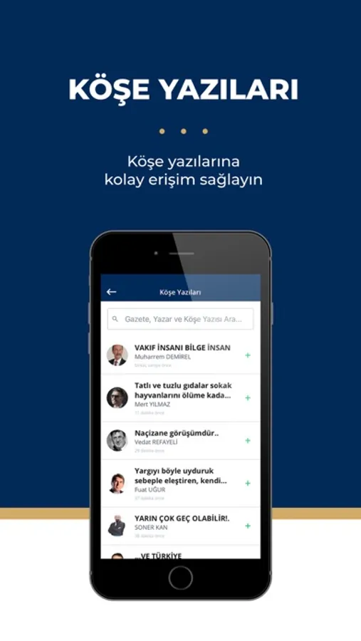 -Tüm köşe yazılarına kolaylıkla erişebilirsiniz.