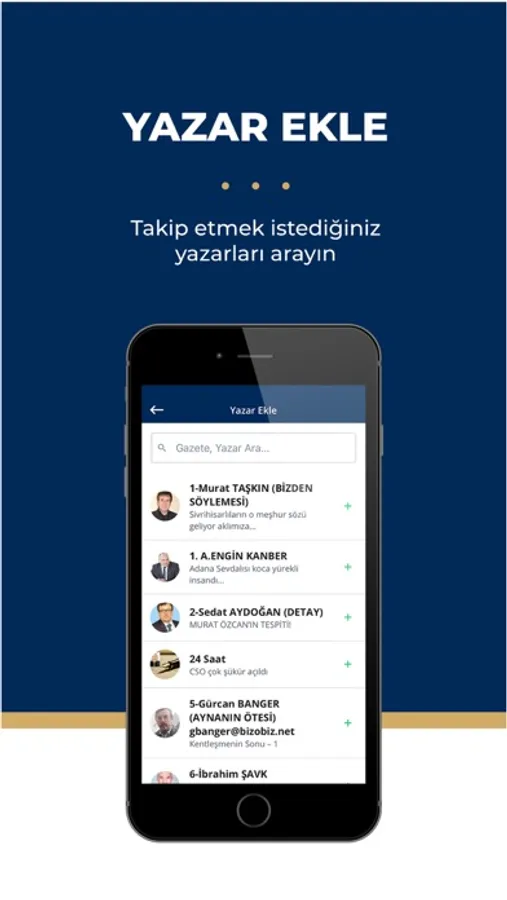 -Takip etmek istediğiniz yazarları listenize ekleyebilirsiniz.