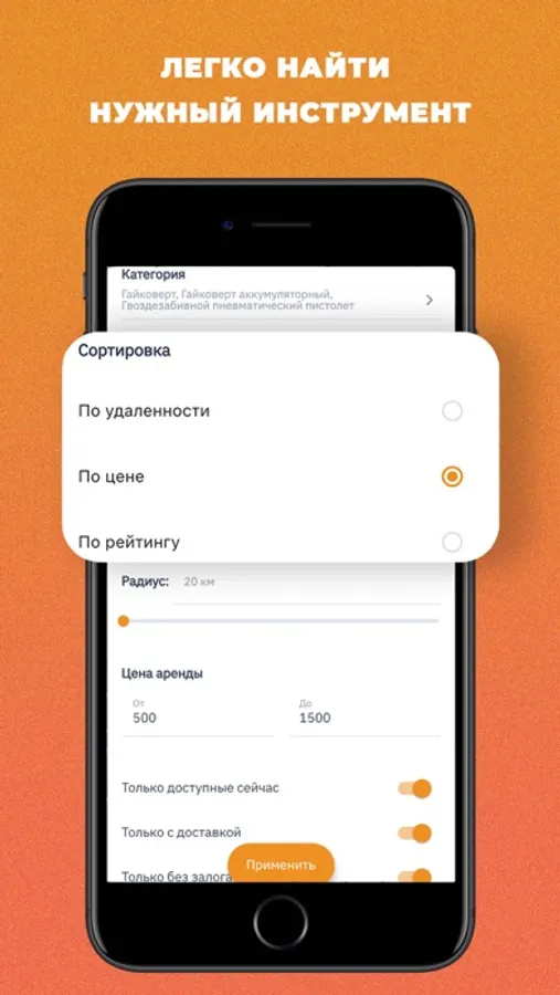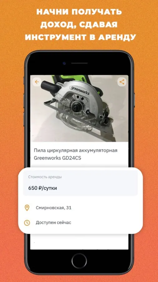 1) Найдите интересующий инструмент поблизости и отправьте запрос на аренду