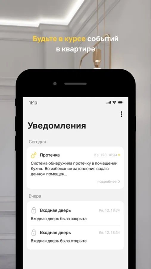 Датчики протечек, пожарные и охранные системы всегда начеку: в случае критической ситуации система автоматически примет защитные меры, а вы мгновенно получите уведомление.