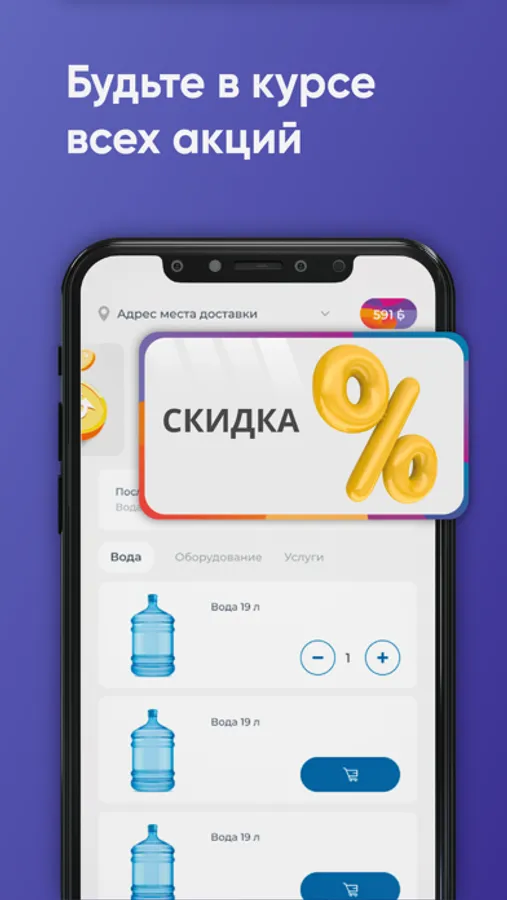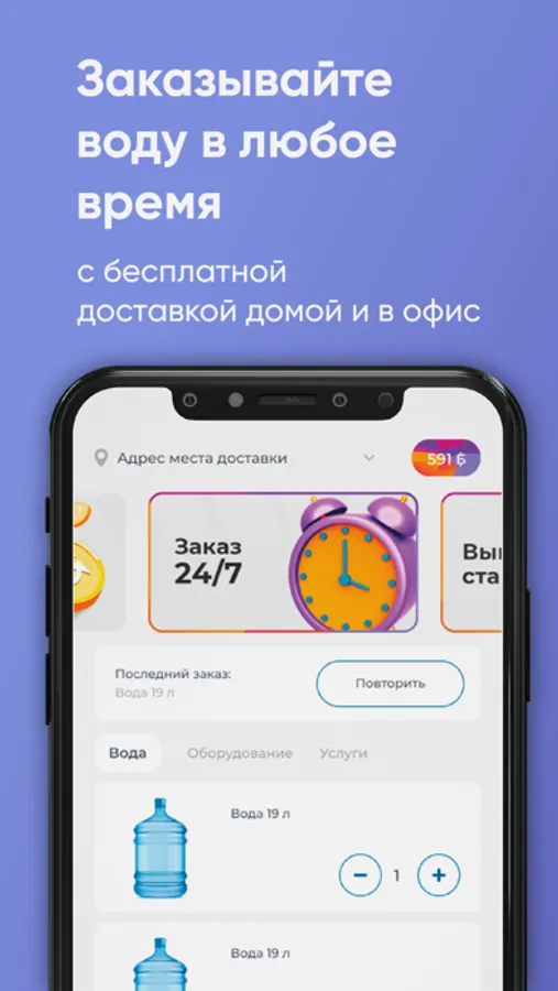 Скачайте бесплатное приложение на телефон и заказывайте чистую воду в удобное время!