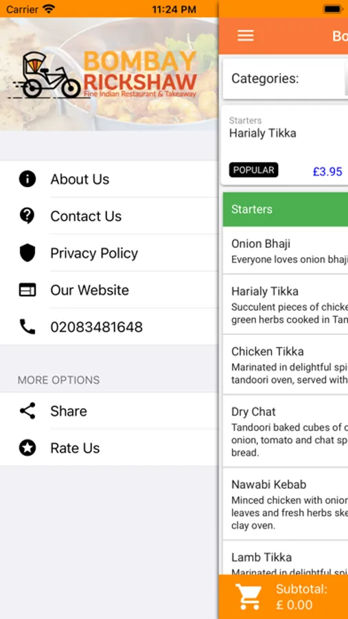 The Bombay Rickshaw is a new generation Indian restaurant and The home of Indian and Bangladeshi Cooking. We are renowned for the outstanding quality of the food we offer. Whether you are looking for an authentic taste of Indian or you would like to try something completely different, The Bombay Rickshaw always has something special to offer.
