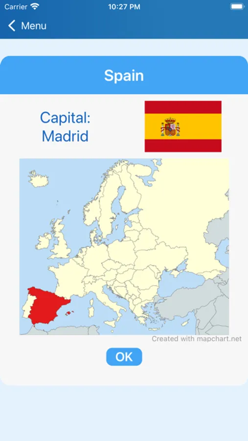 - You can review and learn the capitals, the flags and the maps of the 47 countries of Europe by using the list mode.