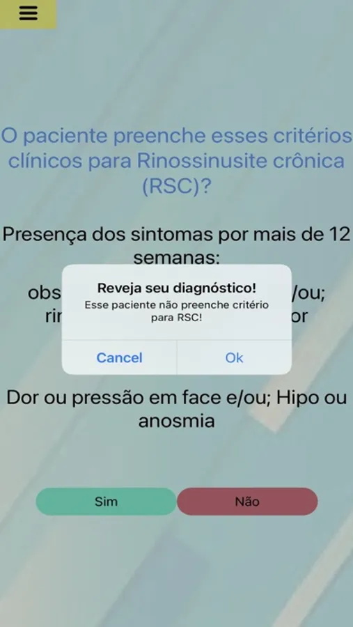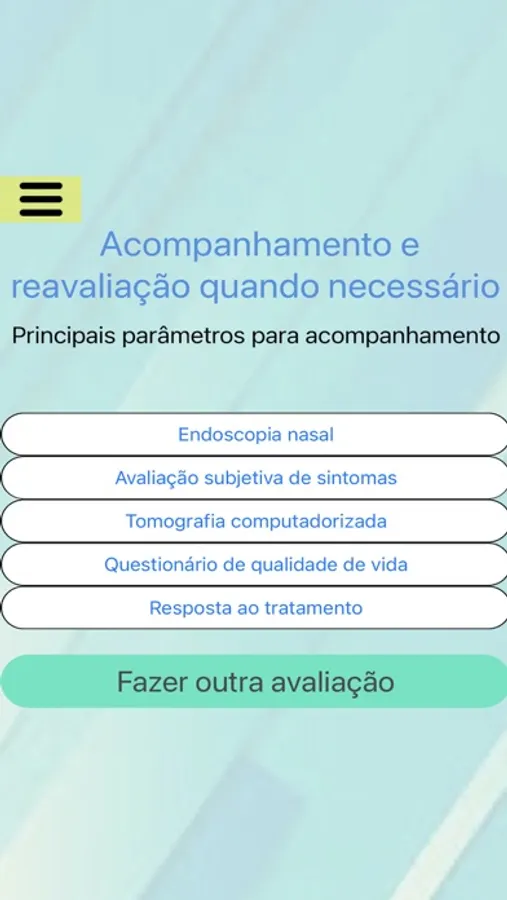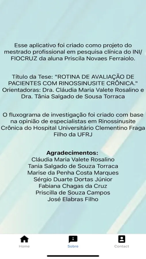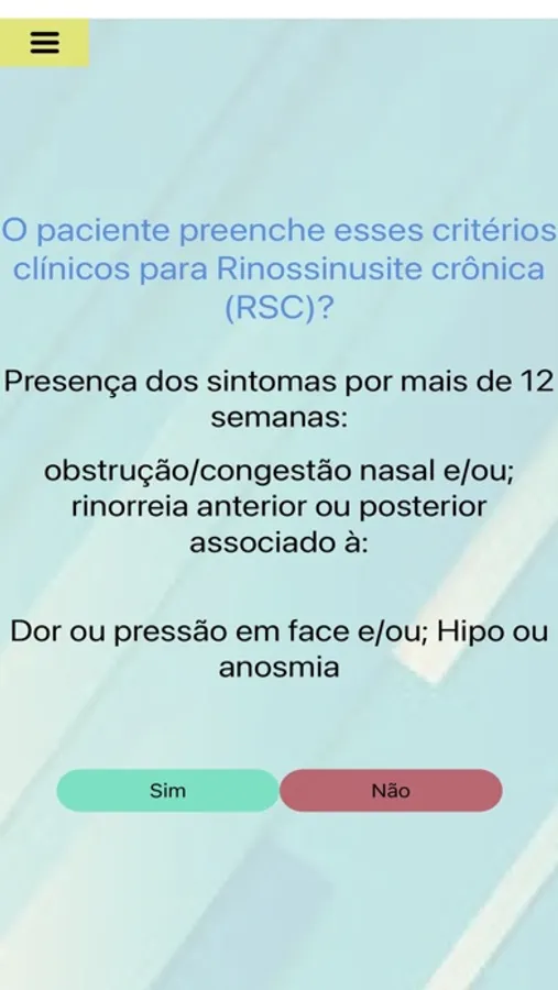 Aplicativo criado para auxiliar os médicos na avaliação e investigação diagnóstica de pacientes com rinossinusite crônica.