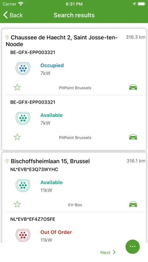 Search by city, zip code or charging station number. Use the search list for an overview of the charging stations that are currently available to you.