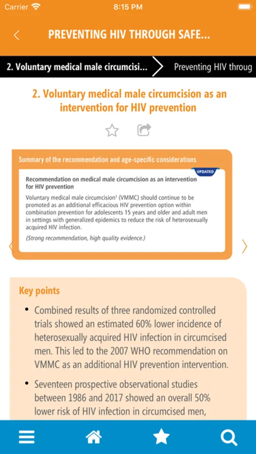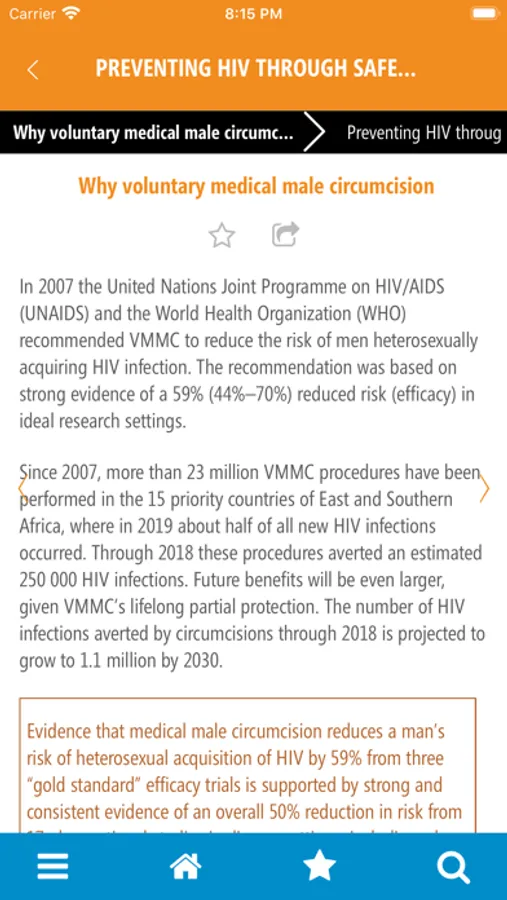 WHO VMMC provides quick and easy to read access to up to date Voluntary Medical Male Circumcision (VMMC) guidelines and resources from the World Health Organization (WHO) Global HIV, Hepatitis, and STIs Programmes. WHO VMMC makes it quicker and easier to view WHO guidance on VMMC on smartphones and tablets, online or off, everywhere and at any time.