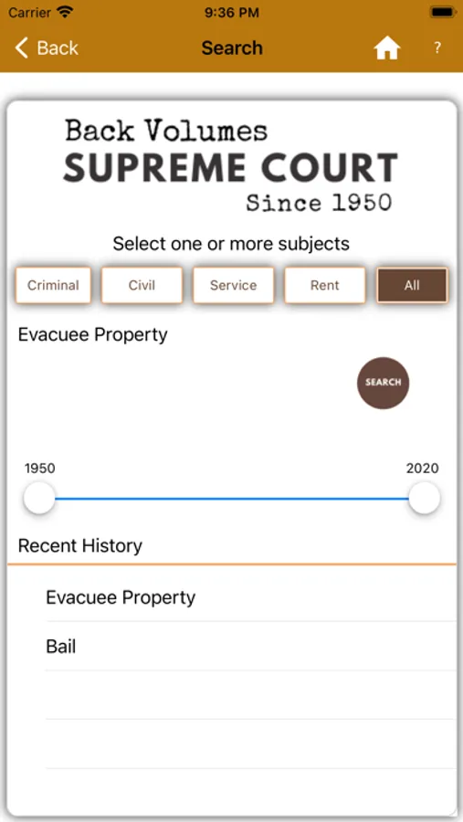 Fully searchable Back Volumes section contains Supreme Court cases from 1950. All cases with Head Notes and parallel citations.