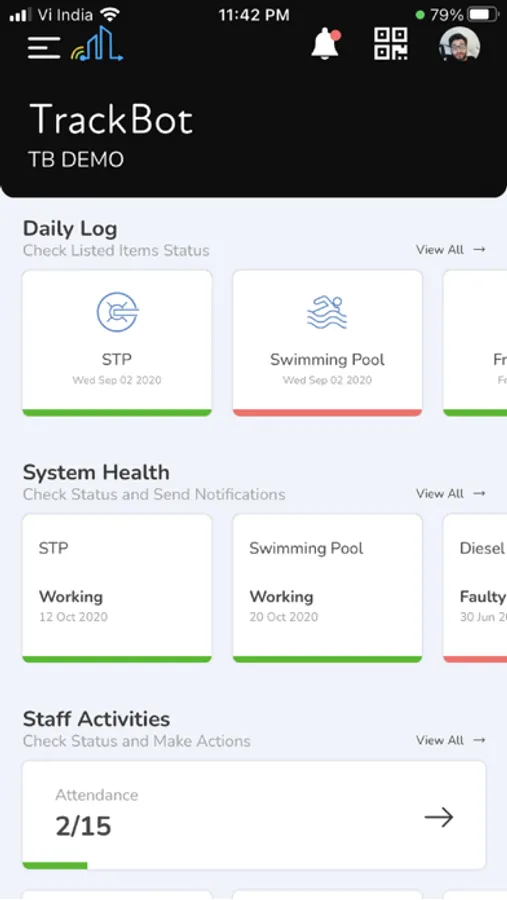 TrackBot facilitates a simple mechanism to track the details you need like current working status, service and repair history, for easy decision making of each and every equipment installed in your premise such as Motors, Starters, CCTV, Lifts, Common Area lights and much more.