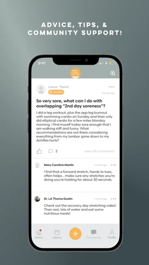- Coaches & Community forum to ask questions, post updates & get recommendations
